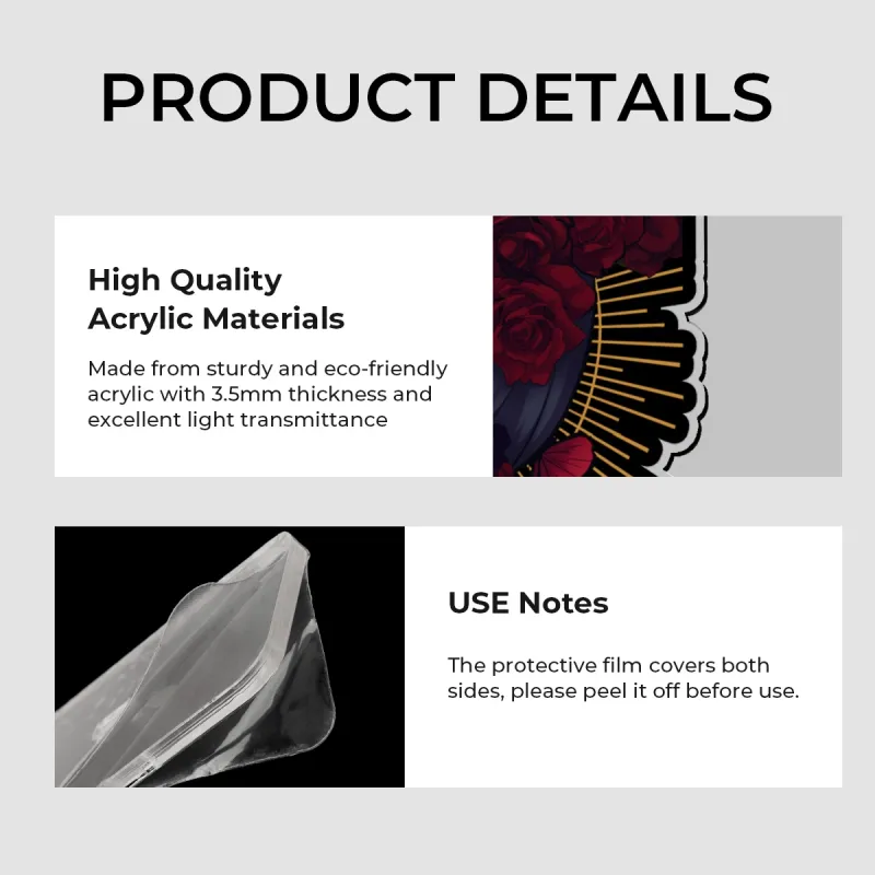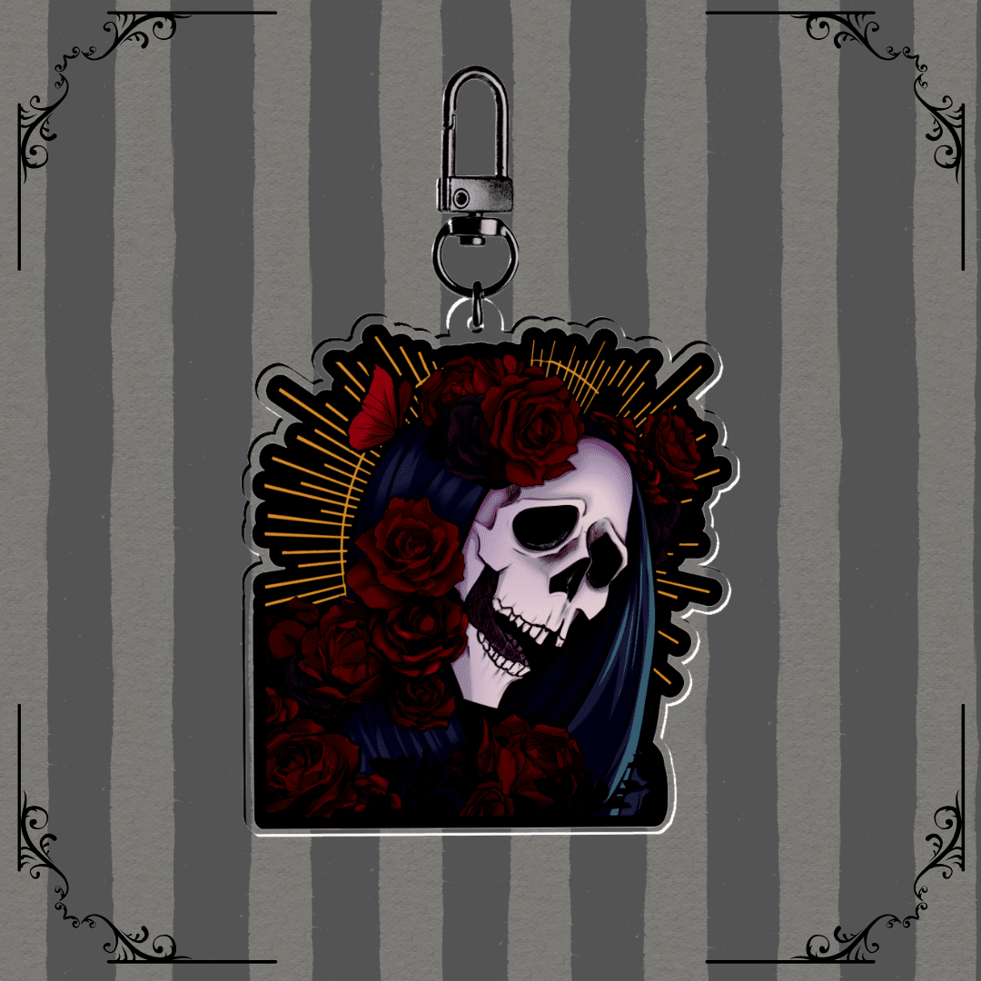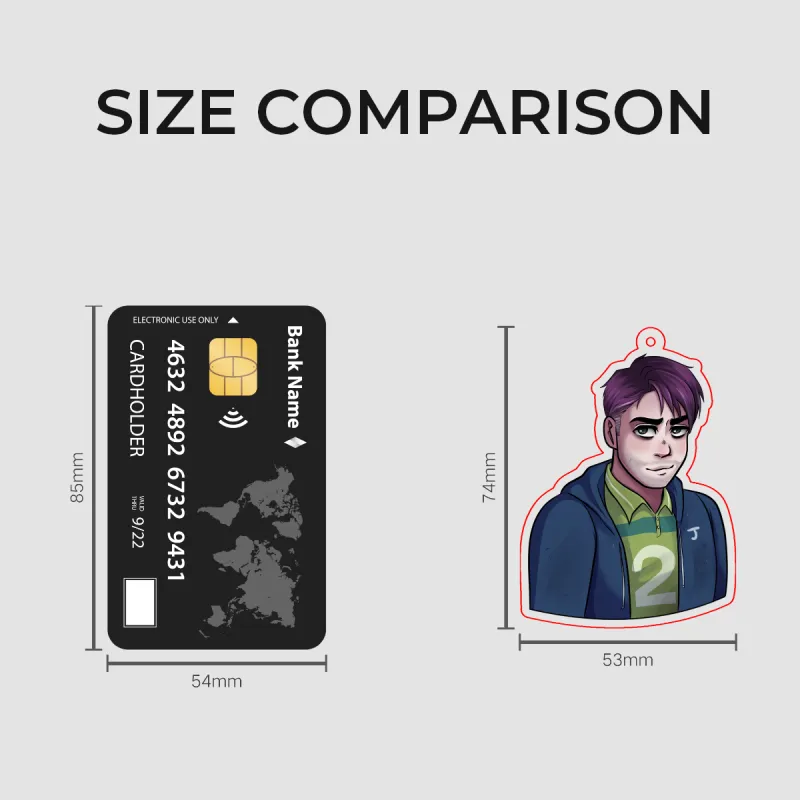 Clear acrylic keychain. Comes with a protective film on both sides, remember to peel off when you receive your keychain!
