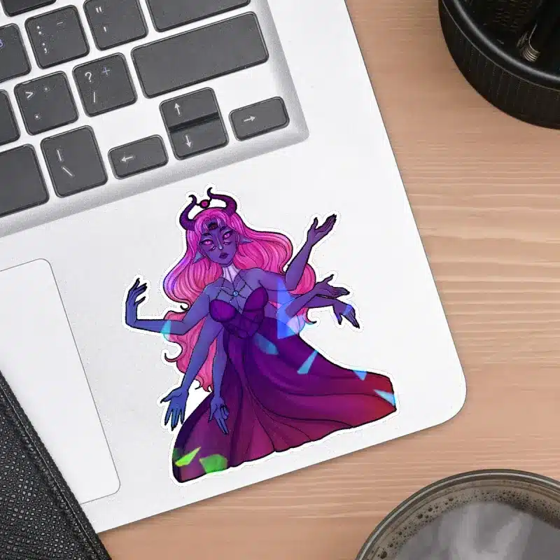 Die Cut sticker with a shattered glass holo top